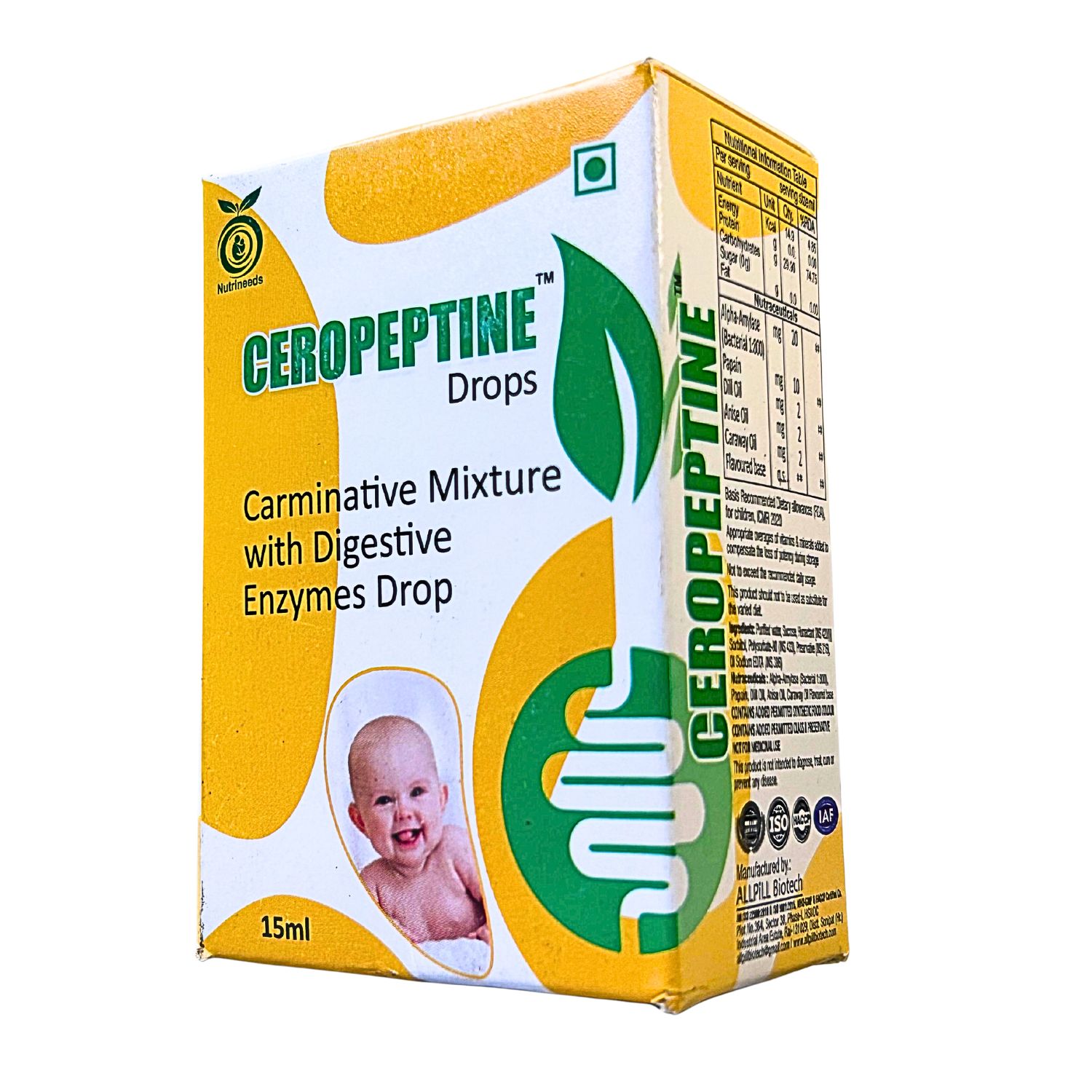 Ceropeptine® Drops is a gentle and effective carminative and digestive enzyme formulation specially designed for infants and young children. Enriched with Alpha-Amylase, Papain, Dill Oil, Anise Oil, and Caraway Oil, it helps relieve common digestive discomforts such as gas, bloating, indigestion, and colic symptoms. The blend of natural oils supports healthy digestion while enzyme-rich ingredients assist in breaking down food for better nutrient absorption.